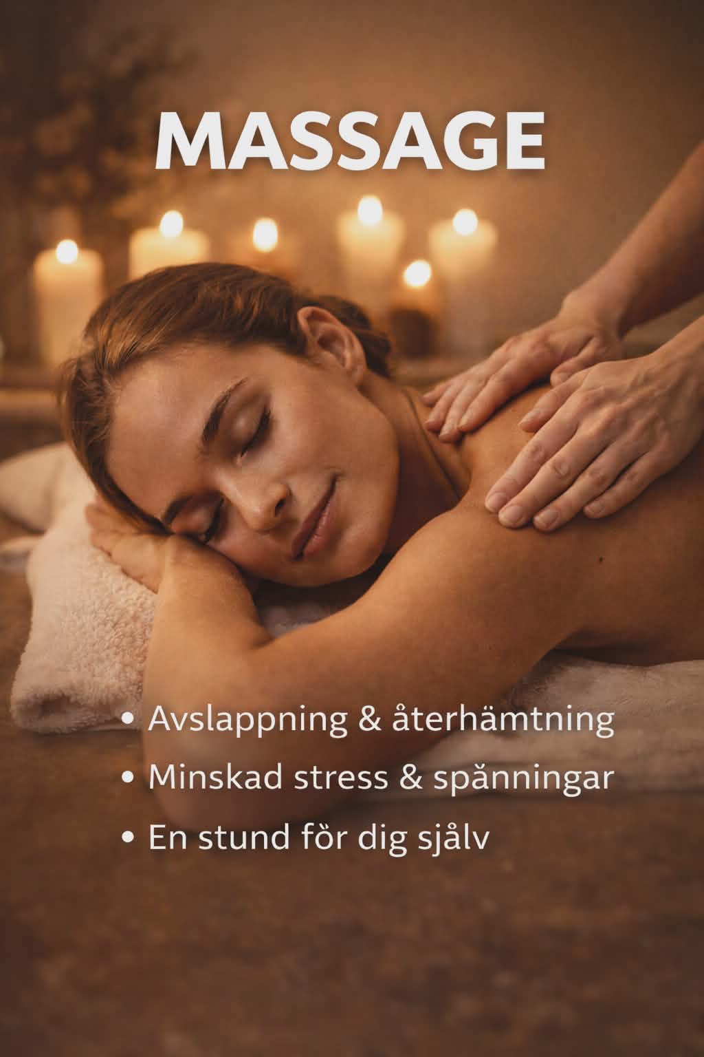 Svensk Klassisk Massage - Trött och stel i muskulaturen? Då är denna massage för dig. Avslappnande, minskar spänningar och ömma muskler.